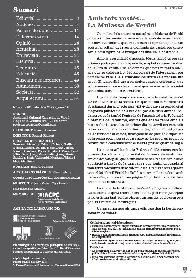 Portada de la revista Xercavins, número 101